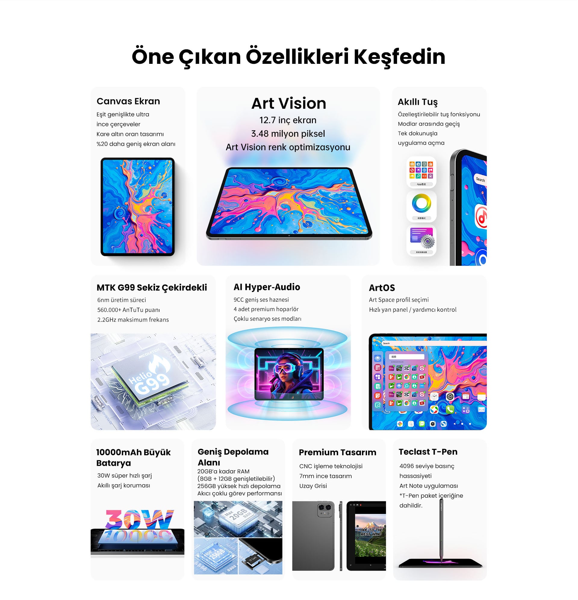 Teclast ArtPad Pro 8/256 GB LTE 12.7'' Tablet + Akıllı Kalem